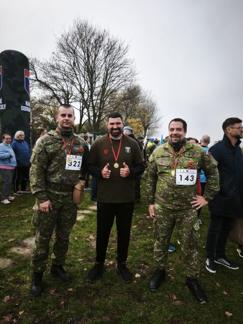 Príslušníci 53. práporu poľných služieb štartovali na 10. ročníku Behu na počesť vojnových veteránov V utorok 11. novembra 2025 sa uskutočnil 10. ročník športovo-spomienkového Behu na počesť vojnových veteránov v Kopčanoch pri Cintoríne prvej svetovej vojny pri Bunkri BS-8 v Bratislave. Súčasťou programu bola pietna spomienka, ktorá sa konala pred začiatkom behu. Podujatia sa zúčastnilo aj 14 príslušníkov nášho práporu, ktorí sa aktívne zapojili do 5,2-kilometrovej trate. Dvaja z nich sa svojimi športovými výkonmi zaradili medzi najlepších účastníkov. Desiatnička Nikola Dojčan obsadila 1. miesto v kategórii ženy do 39 rokov s časom 20 minút a 12 sekúnd. Napriek tomu, že je aktuálne na materskej dovolenke, prišla podporiť športovo-spomienkový beh a zároveň aj práporné družstvo. Slobodník Dominik Zaťko získal 2. miesto v kategórii muži do 39 rokov s časom 17 minút a 56 sekúnd. Účasť našich profesionálnych vojakov nebola len športovým výkonom, ale najmä prejavom úcty k pamiatke vojnových veteránov. Príslušníci 53. práporu poľných služieb sa nielen zúčastňovali akcie ako účastníci behu, ale aj na samotnom logistickom zabezpečení a na bezproblémovom priebehu akcie. Pri športovo-spomienkovej akcii boli nápomocní príslušníci roty rbzaKIS a rps, ktorí pomáhali pri budovaní a demontáži stanov, centrál a kontajnerov. Touto cestou vyjadrujeme poďakovanie všetkým zúčastneným za bezchybné a profesionálne zabezpečenie celého podujatia. Je pre nás cťou byť súčasťou tímu, ktorý každoročne prispieva k dôstojnému priebehu tejto športovo-spomienkovej akcie.