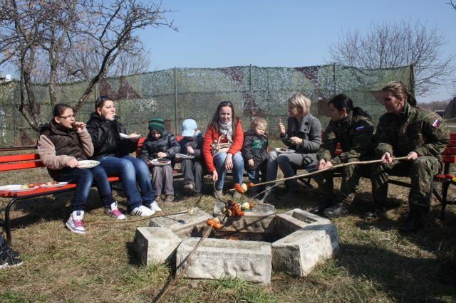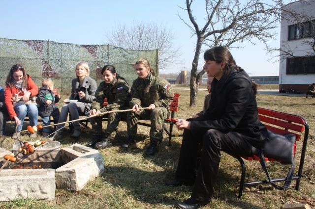 Účelom stretnutia bola psychologická príprava rodín na návrat vojakov a poskytnutie informácií o činnostiach súvisiacich s ich návratom. V prvej časti stretnutia dominoval psychológ, por. Martin ZAJAK, ktorý navodil veľmi príjemnú a otvorenú atmosféru a svojím rozprávaním vedel rodiny zaujať aj povzbudiť zároveň. Prvý závan jari sme využili naplno a stretnutie pokračovalo pri ohníku, čomu sa určite najviac potešili deti.