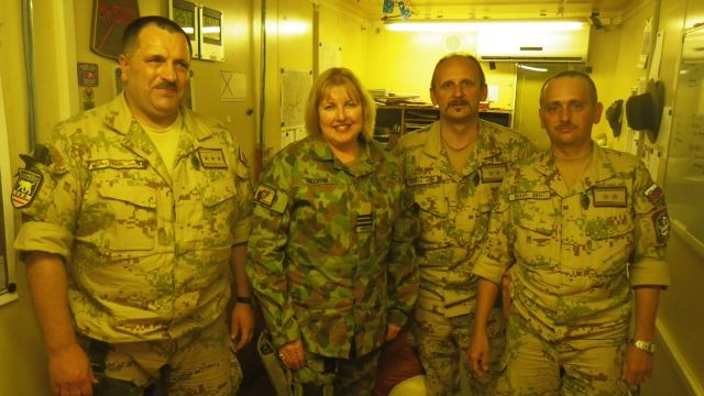 Počas prijatia u veliteľky vojenskej základne MNB-TK (Multinational base) wingcommander (podplukovníčka) Catherine WILLIAMS, veliteľ 2.mb poďakoval veleniu základne za spoluprácu a podporu našich vojakov.