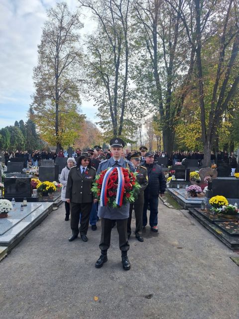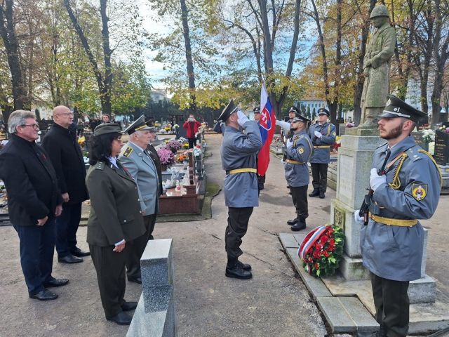 11.11. - Deň vojnových veteránov Pri príležitosti 107. výročia ukončenia 1. svetovej vojny si dňa 11. novembra na Starom cintoríne v Topoľčanoch tichou pietou pripomenuli príslušníci 1. mechanizovanej brigády, na čele s veliteľom brigády brigádnym generálom Štefanom Acsaiom, všetkých hrdinov padlých v I. svetovej vojne. Tento deň patrí všetkým, ktorí slúžili vlasti s nasadením svojho vlastného života. Na ich počesť bolo presne o 11 hodine a 11 minúte, teda v čase podpísania mieru, symbolicky odpálených 11 slávnostných sálv. Bezprostredne po ich odznení vzdali všetci prítomní úctu minútou ticha, po ktorej už nasledoval pietny akt kladenia vencov a modlitba. Spomienkového aktu sa okrem vojakov z Veliteľstva 1.mechanizovanje brigády, 103.roty podpory velenia a 14. práporu logistiky, osobne zúčastnili aj zástupca primátorky mesta Topoľčany Juraj Želiska, prednostka Okresného úradu Topoľčany Jana Malinková, členovia Slovenského zväzu protifašistických bojovníkov, členovia Klubu Zväzu vojakov SR v Topoľčanoch na čele s predsedom klubu podplukovníkom v.v. Jánom Poliačikom, ako aj žiaci a pedagógovia stredných škôl z Topoľčian či mnoho ďalších. Na záver spomienkového podujatia odznela báseň Na flámskych poliach, ktorá sa stala symbolom nového života. „Život ľudí, ktorí položili svoje životy či už v ozbrojených konfliktoch alebo mierových operáciách po celom svete bol krátky, ale zároveň bohatý. Bohatým preto, lebo bol naplnený úsilím, sebazaprením a obetavosťou v prospech iných. Patrí im za to úcta a vďaka nás všetkých!“