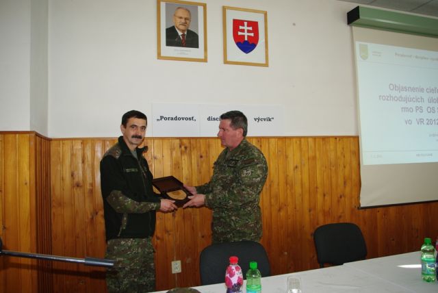 Veliteľ rmo podplukovník Zoltán Farkas, vo svojom vyhodnotení spomenul spôsob splnenia úloh a priorít, za ktoré bolo rmo zodpovedné. Okrem toho prítomným objasnil ciele a rozhodujúce úlohy, ktoré v tomto roku budú plniť. Zároveň podplukovník Farkas poďakoval všetkým, ktorí v náročných podmienkach plnili stanovené úlohy spoľahlivo, zodpovedne, svedomito, včas a zaželal im veľa pracovných úspechov v roku 2012.