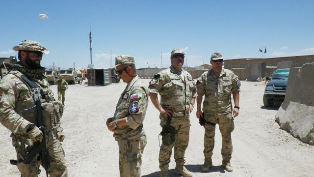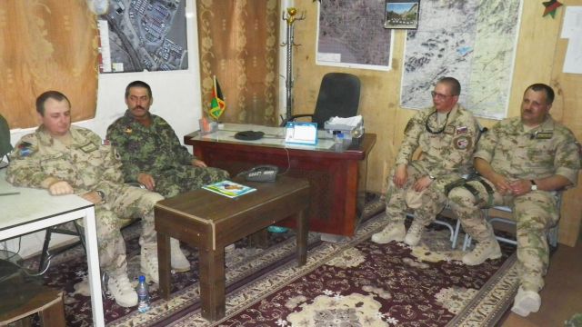 Veliteľ brigády v sprievode odchádzajúceho veliteľa NSE (National Support Element) podplukovníka Róberta Plávku a jeho nástupcu podplukovníka Mariána Makaya sa priamo na strážnych pozíciách presvedčil o náročnej a vysoko zodpovednej práci slovenských vojakov v tejto vojenskej operácii na vojenskej základni v Tarin Kowte.