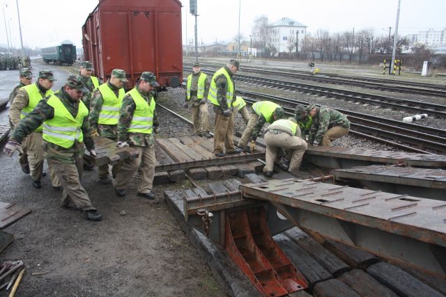 Pod dozorom príslušníka Správy vojenskej dopravy sa na stanici vojaci oboznámili s organizáciou a bojovým zabezpečením vojenských prevozov a transportov a prakticky si vyskúšali výstavbu rampy UNOR (univerzálna nakladacia oceľová rampa). Vodiči a velitelia všetkých stupňov sa precvičili v nasúvaní techniky na železničné vagóny a jej upevňovaní.