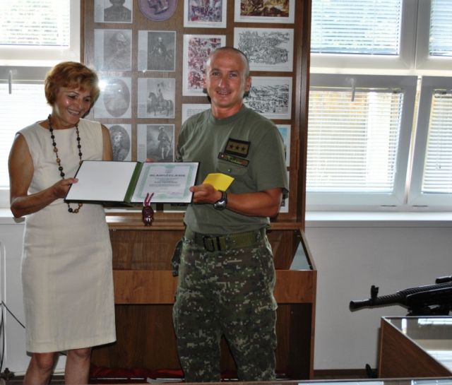 Symbolickým spôsobom na Sieni cti a slávy 1.mb v mene veliteľa brigády a príslušníkov Veliteľstva 1.mb  plukovník Zoltán IBOŠ - zástupca veliteľa, zablahoželal oslávenkyni Soni PSOTOVEJ - samostatnej referentke Oddelenia personálneho manažmentu, ktorá sa dožíva krásneho životného jubilea 60 rokov života.  K okrúhlym narodeninám plukovník IBOŠ zaželal jubilantke veľa zdravia a šťastia v osobnom aj pracovnom živote.