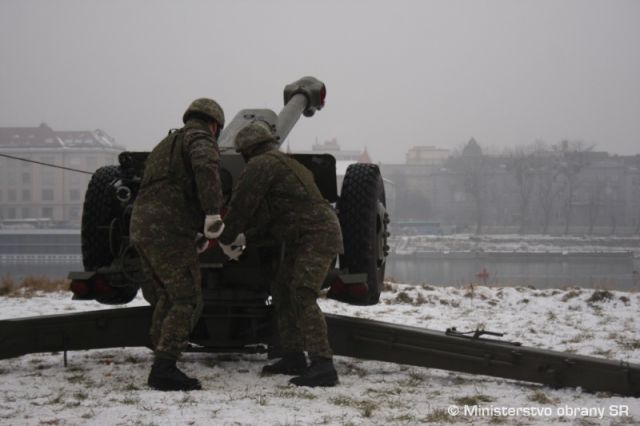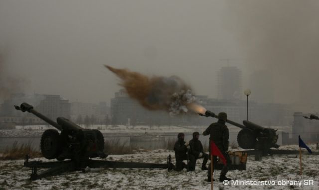 Delostrelci z michalovského samohybného delostreleckého oddielu dnes privítali Nový rok v Bratislave na Tyršovom nábreží. Dvadsať slávnostných sálv zaznelo z nábrežia presne o 14.00 pri príležitosti 22. výročia vzniku Slovenskej republiky a Ozbrojených síl SR.