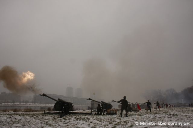 Delostrelci dnes odpálili slávnostné salvy zo šiestich 122 milimetrových húfnic D-30A. Prvý výstrel tejto novodobej tradície zaznel v Bratislave 1. januára 1994 a odvtedy sa táto tradícia koná každoročne.