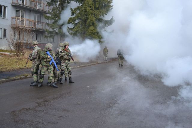 „Druhý týždeň sa snažili všetky získané poznatky využívať pri plnení reálnych úloh pod rôznorodým stresom (časovým, spôsobeným prepadmi, výbuchmi, v uzatvorených zadymených priestoroch). Museli ich okrem iného vedieť použiť aj pri prekonávaní prekážkovej dráhy, keď boli fyzicky vyčerpaní. Pri taktickom presune pod námetom uskutočnili prepad a zaistili rukojemníka. Aby to nemali také jednoduché, tak sa počas plnenia spomínaných úloh museli brániť prepadom zo strany protivníka, postarať sa o svojho raneného spolubojovníka. Išlo o to, aby sa naučili plniť všetky úlohy ako tím,“ približuje náplň kurzu poručík Rumlík.