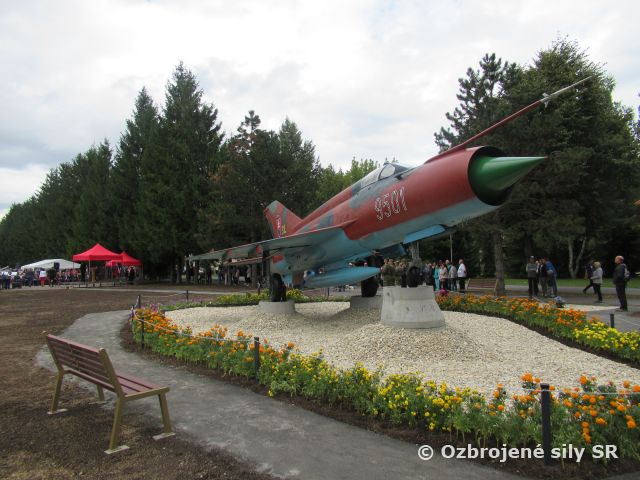 Program začal hymnou Slovenskej republiky, po ktorej moderátor privítal účastníkov. Nasledoval príhovor primátorky mesta Sliač, príhovory podpredsedu vlády a ministra hospodárstva SR a ministra obrany SR. Záverečný príhovor patril veliteľovi taktického krídla Sliač, ktorý prítomným predstavil históriu leteckej základne Sliač a históriu odhaleného pamätného lietadla MiG-21. Stíhacie lietadlo MiG-21MF s trupovým číslom 9501 bolo prvým lietadlom 81. samostatnej stíhacej letky, ktoré pristálo 7. mája 1991 na pôde vtedajšieho letiska Sliač - Tri Duby. Jeho pilotom a zároveň budúcim veliteľom základne bol brigádny generál v. v. Jozef Krakovský (v tom čase podplukovník).